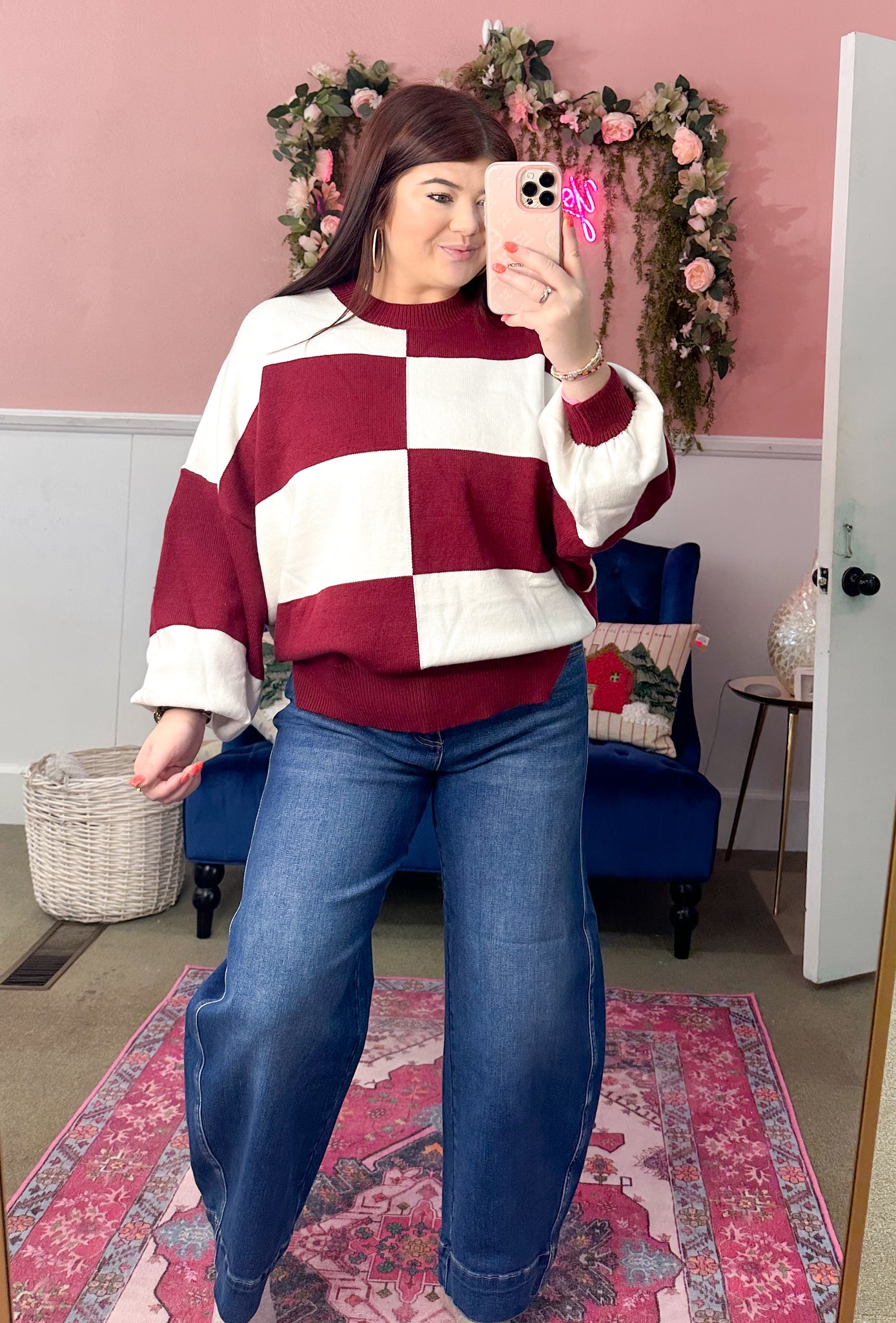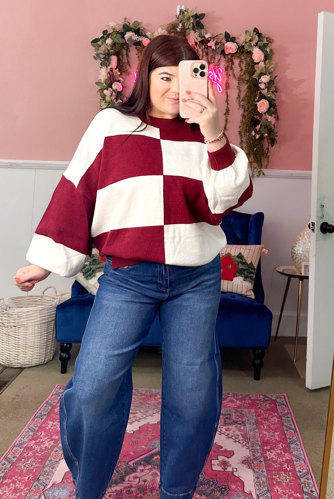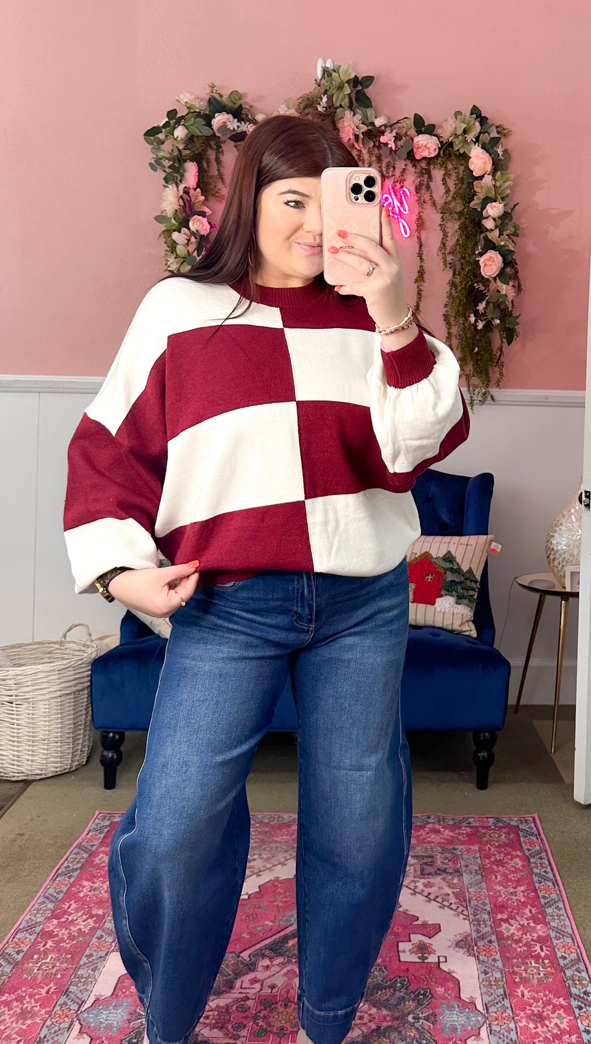 This is the best feeling material! This top can be worn all fall and all winter! The checkered print is so popular right now! We have already had this same top in different colors and it's completely sold out!