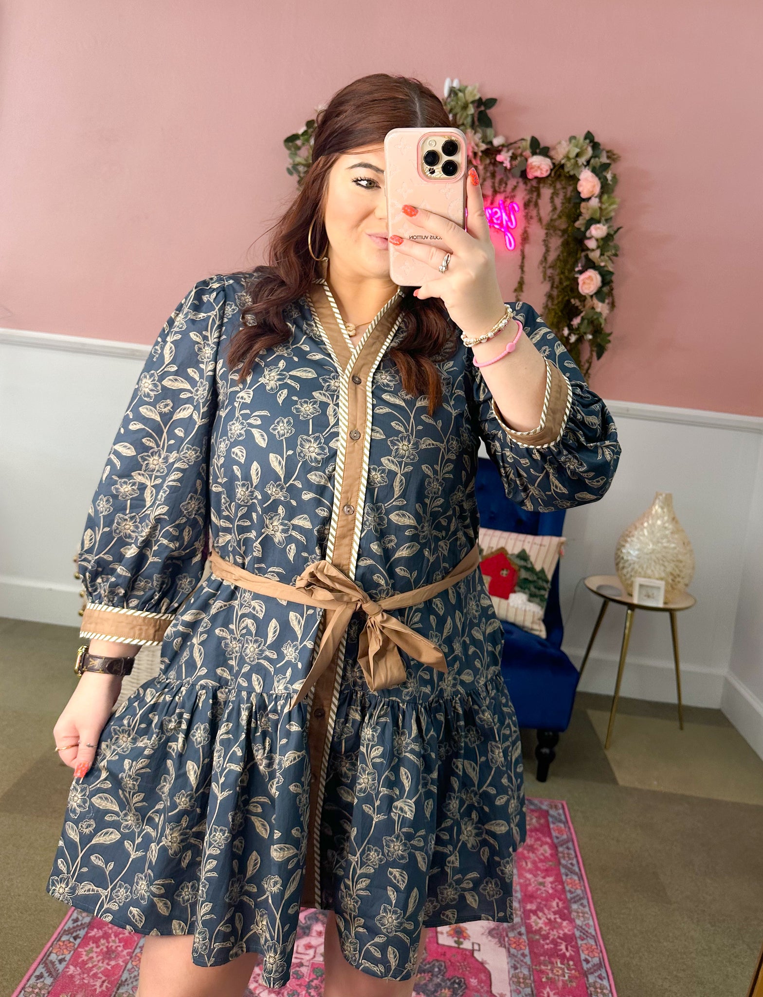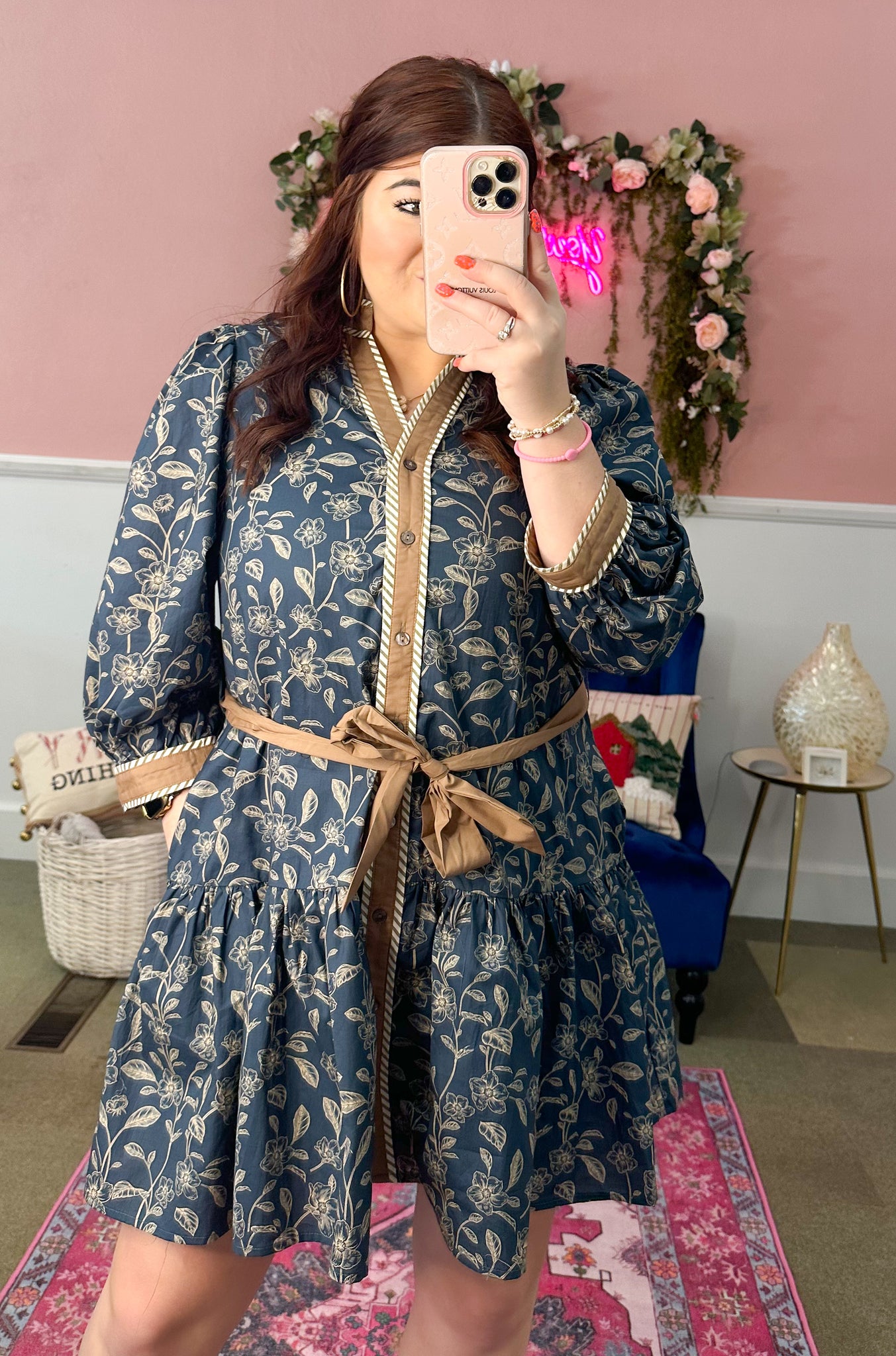 This Entro dress has all of the perfect fall colors! It's a mix of navy blue, brown, and creams! And it has pockets!! Definitely a must have! Very flattering savannah is wearing her true size which is a large!