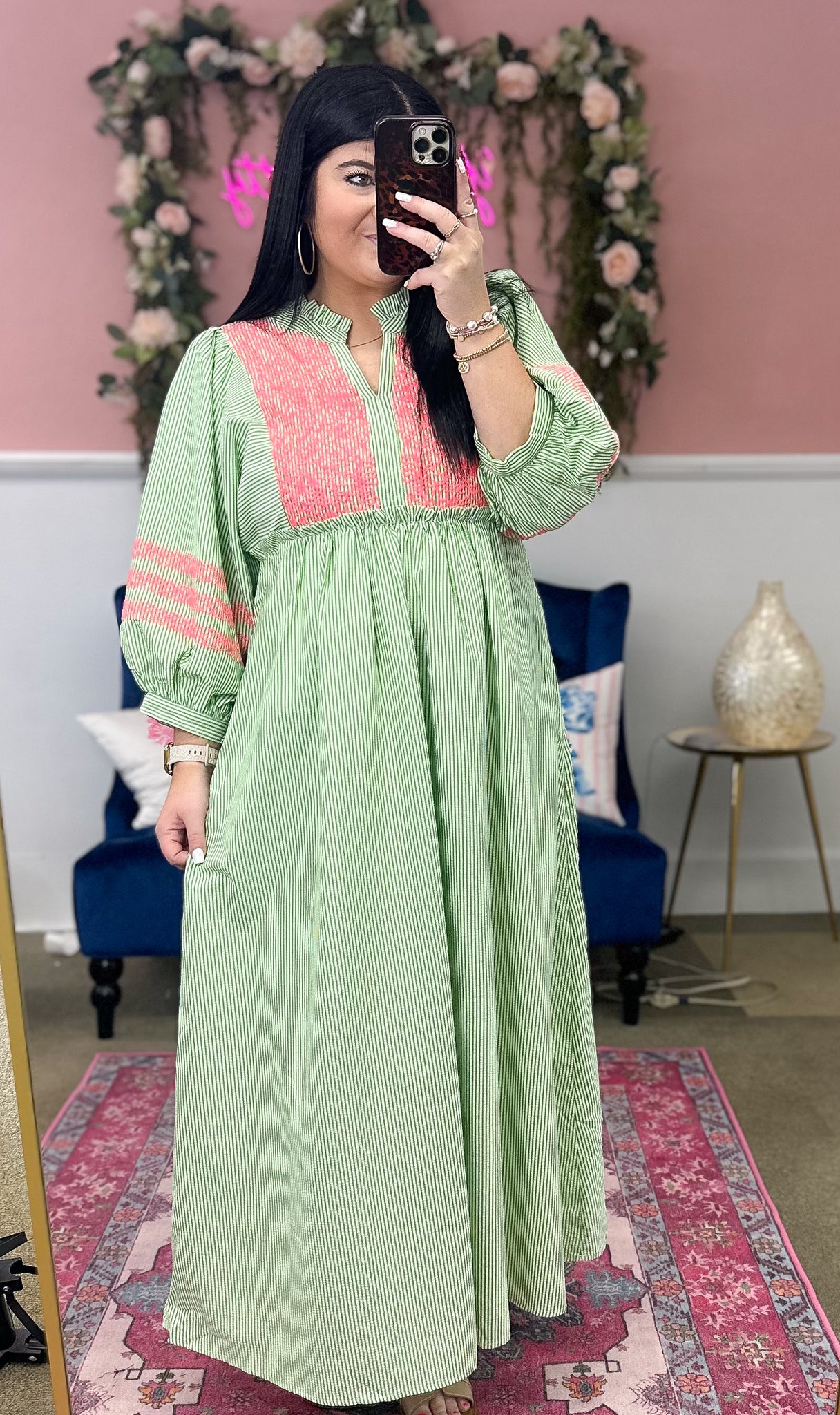 This dress is absolutely stunning! The colors are so vibrant so perfect for spring and summer! The embroidery details are everything! Fits true to size! Savannah is wearing the large! And has pockets!