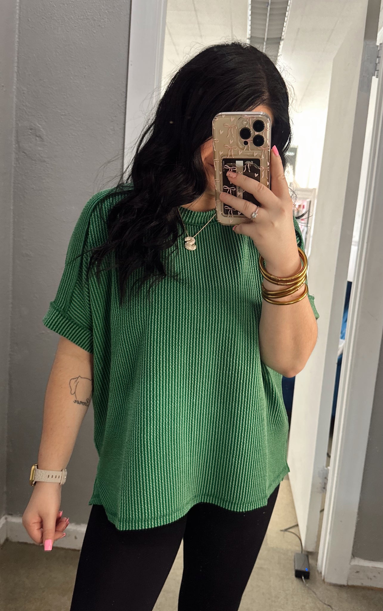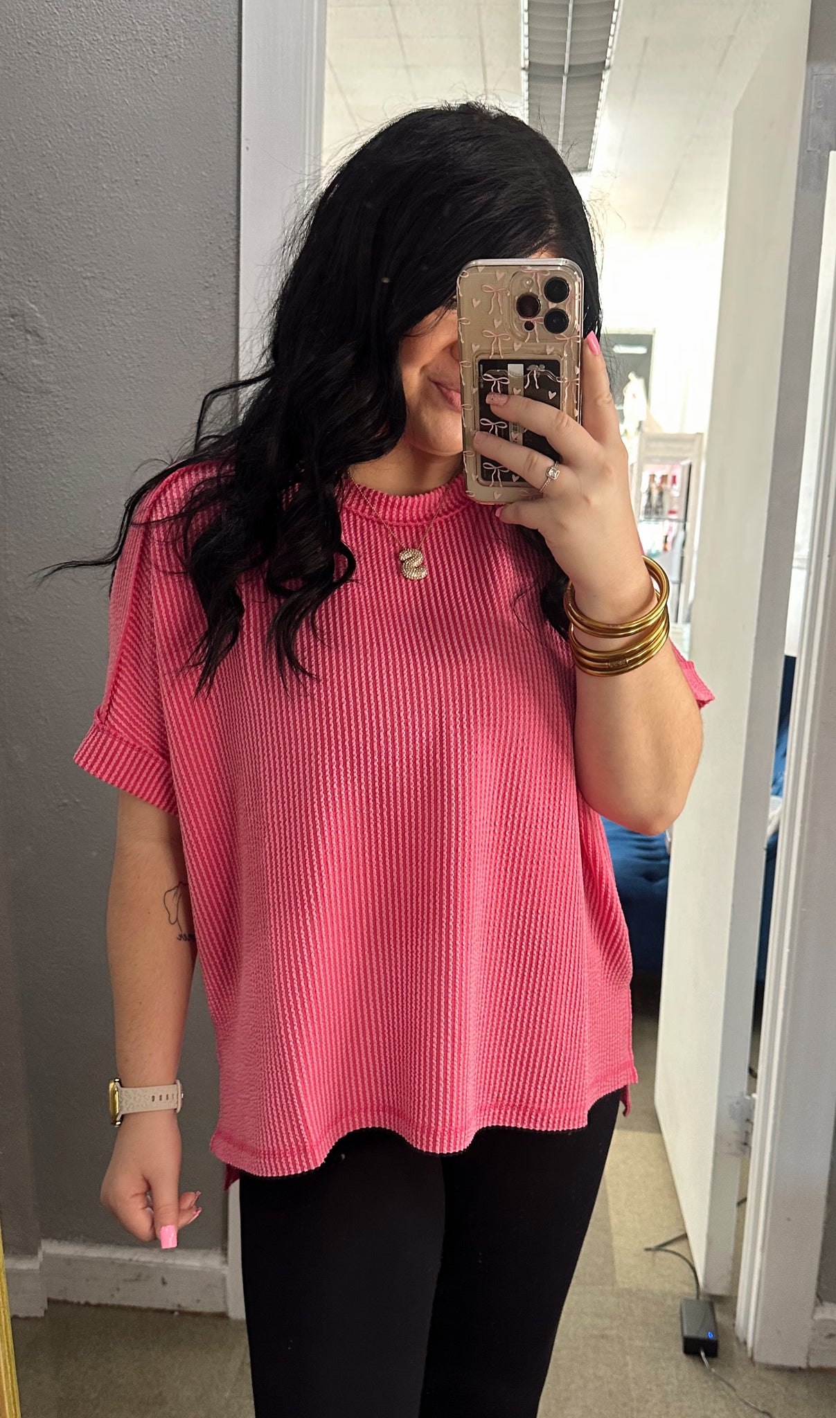 These are one of our number one top selling tops. They are so cute and so comfortable! The best part is they can be styled up with a pair of jeans or down with a pair of leggings /shorts!