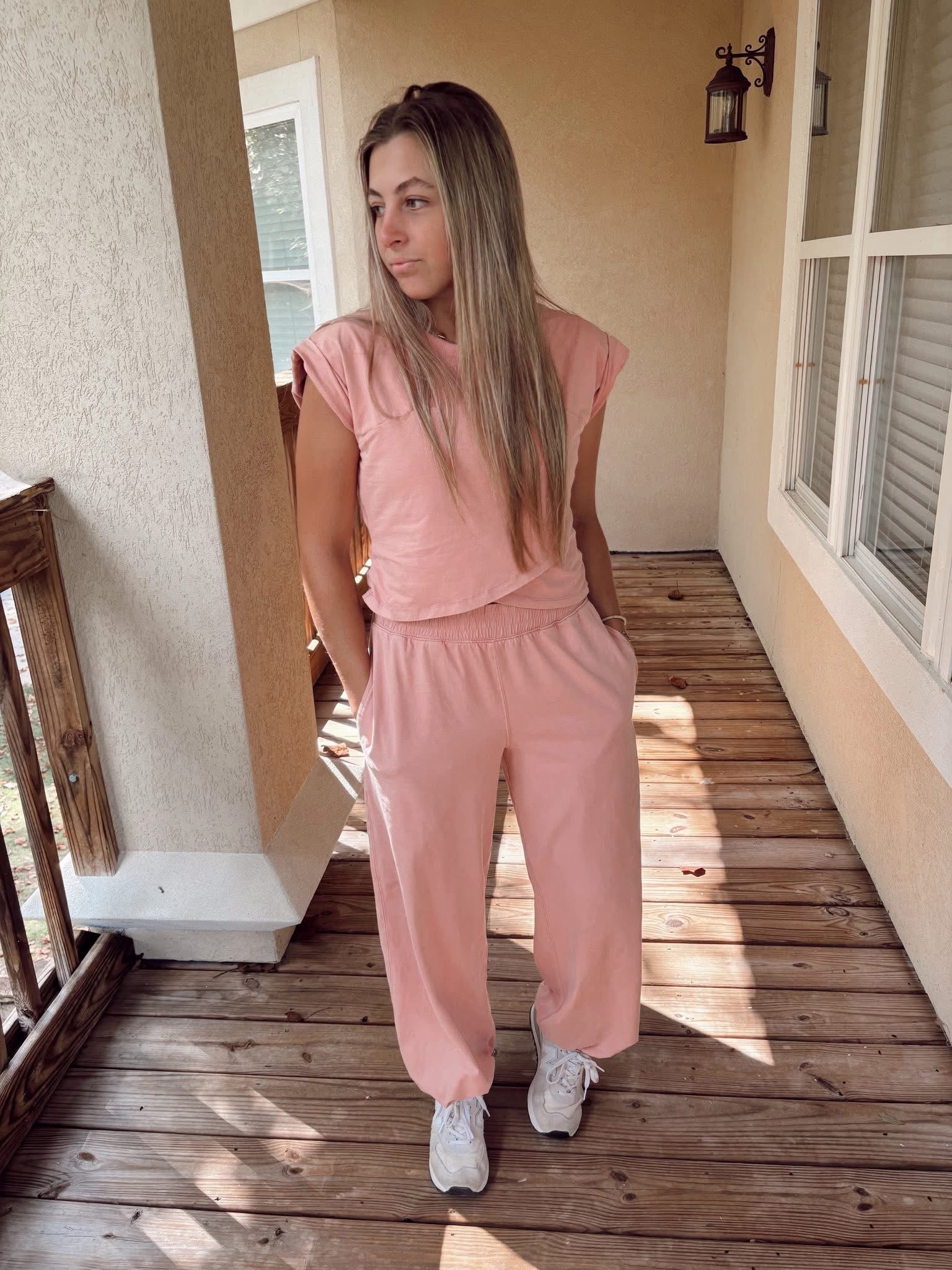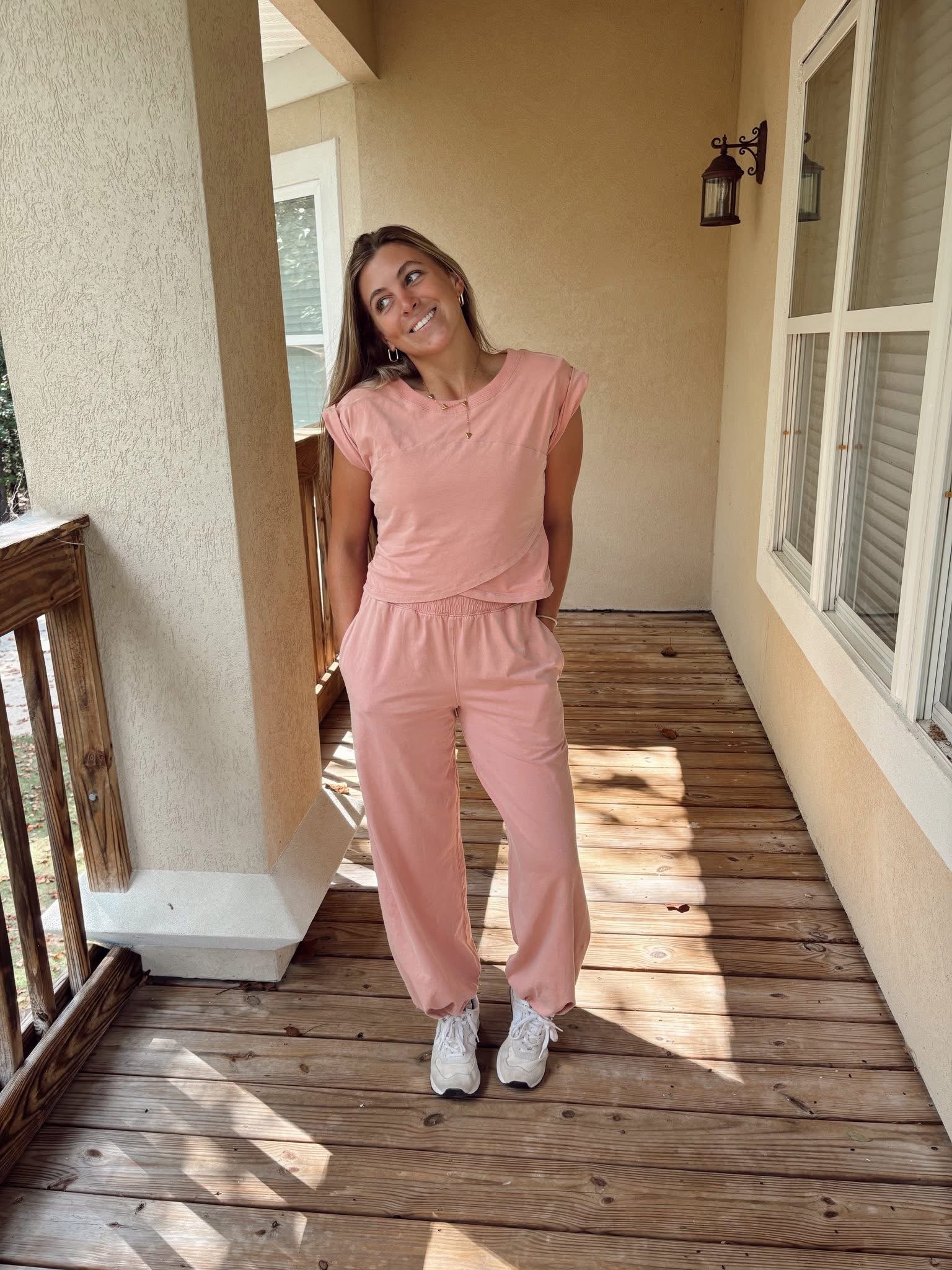 This set is so soft and stretchy! Fits a tad bit fitted in the top! With joggers! Can easily be dressed up or down!