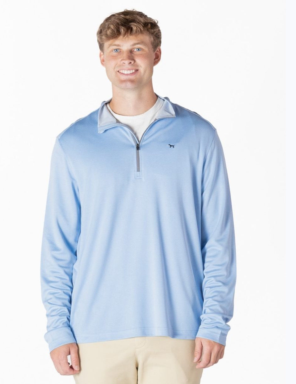 The Men's Quarter Zip is the perfect cooler weather layering piece. It features a zip mock neck neckline, striped body, and relaxed fit. Made of 100% polyester.