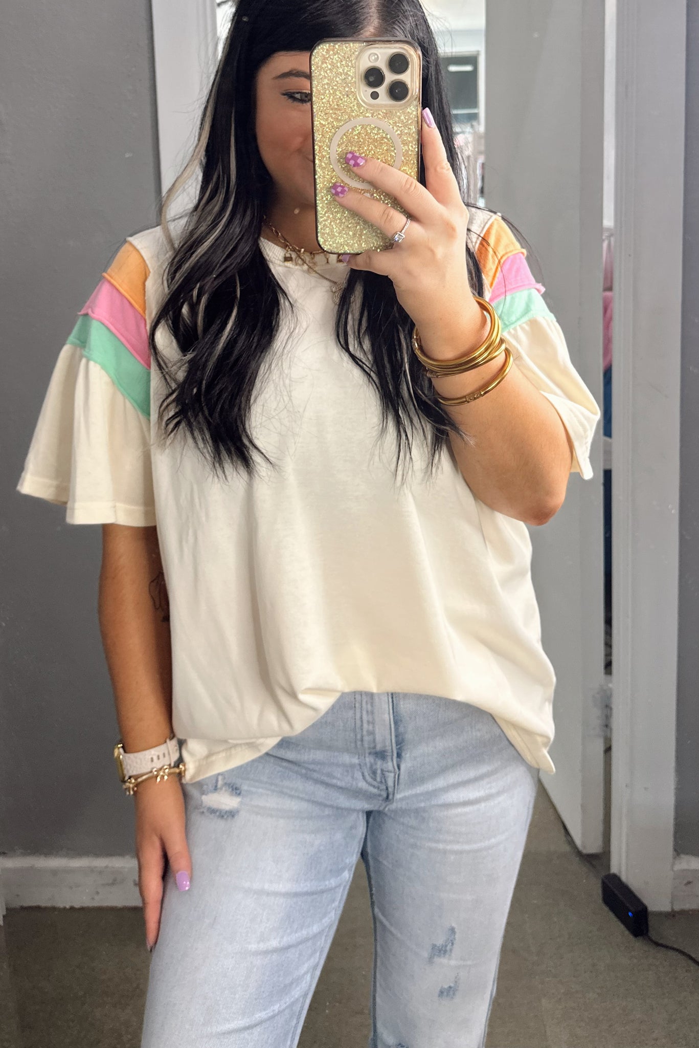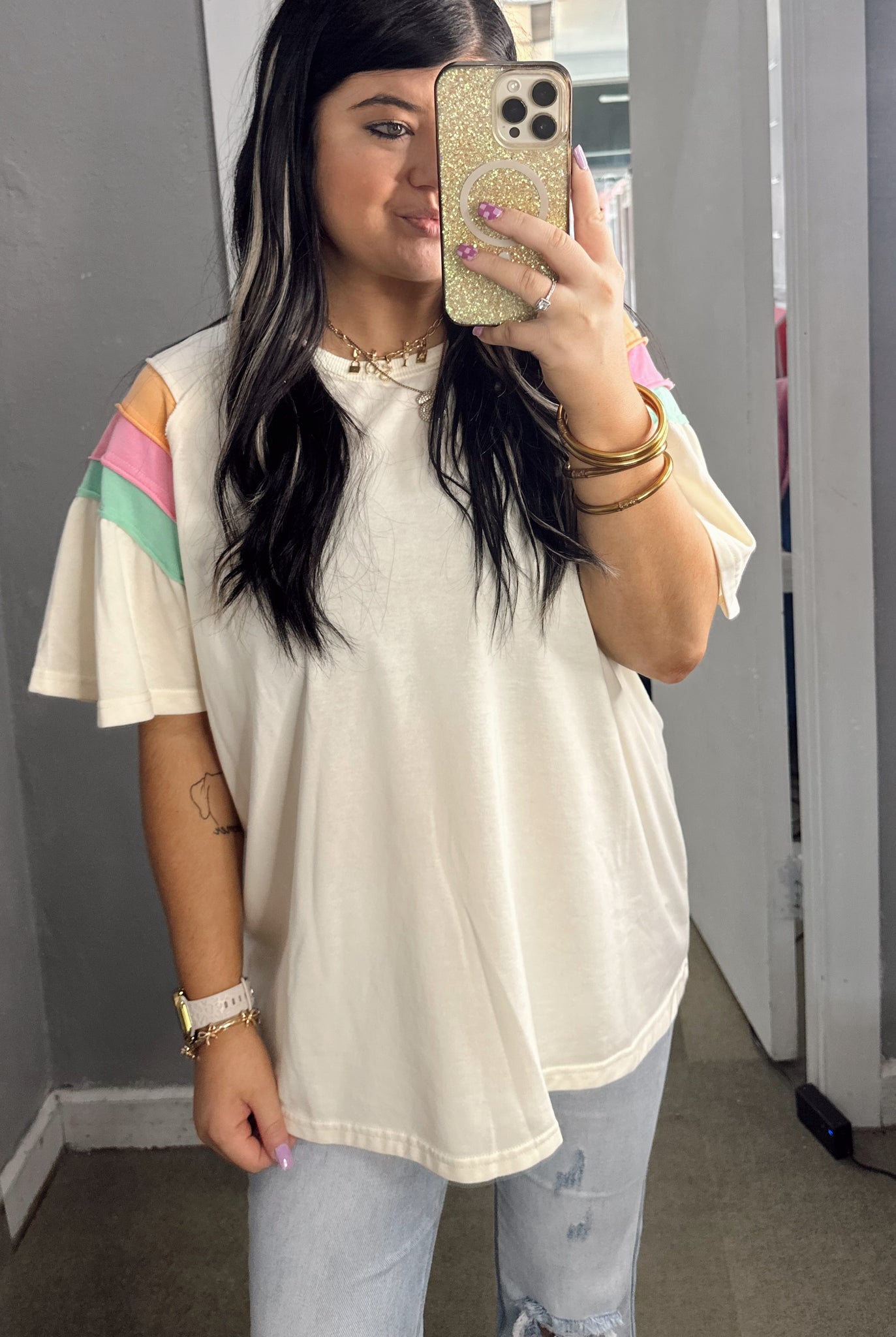 This easel top is perfect for spring and summer! Very flowy and lightweight! Fits a tad bit oversized! Savannah is wearing the large!
