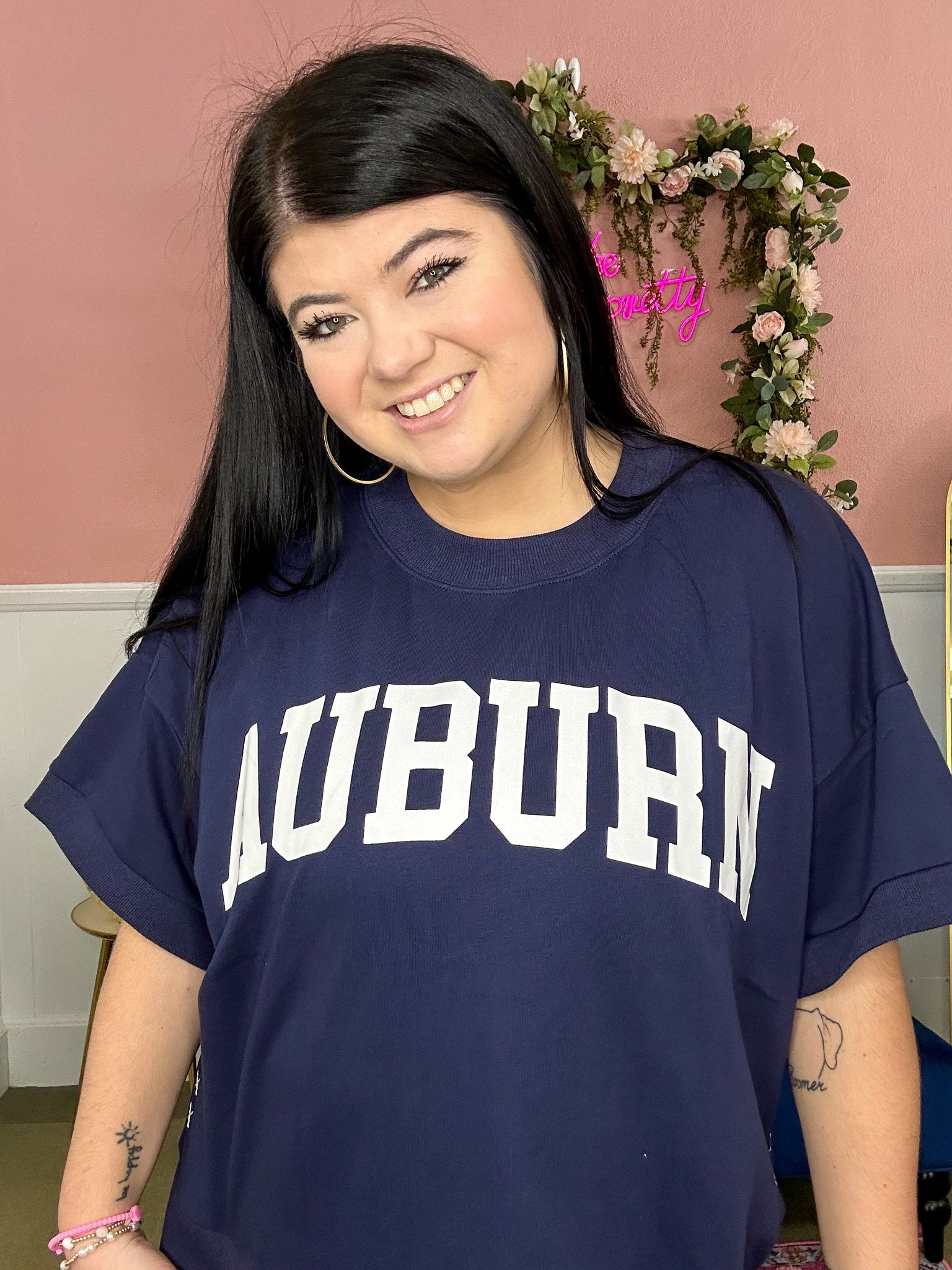 This top Almost sold out before I could even get it online! This top is perfect for a Navy out au game! Savannah is wearing her true size which is a large!