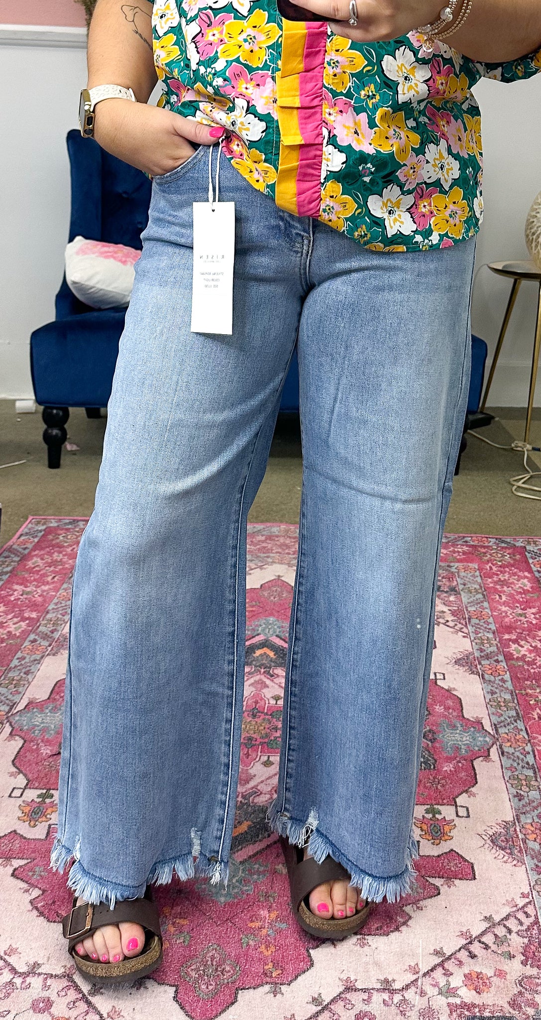 These jeans are cropped! But savannah is 5'2 and they are the perfect length on her! Risen jeans have become our top seller, they are so stretchy and comfy! They keep their shape throughout the day!