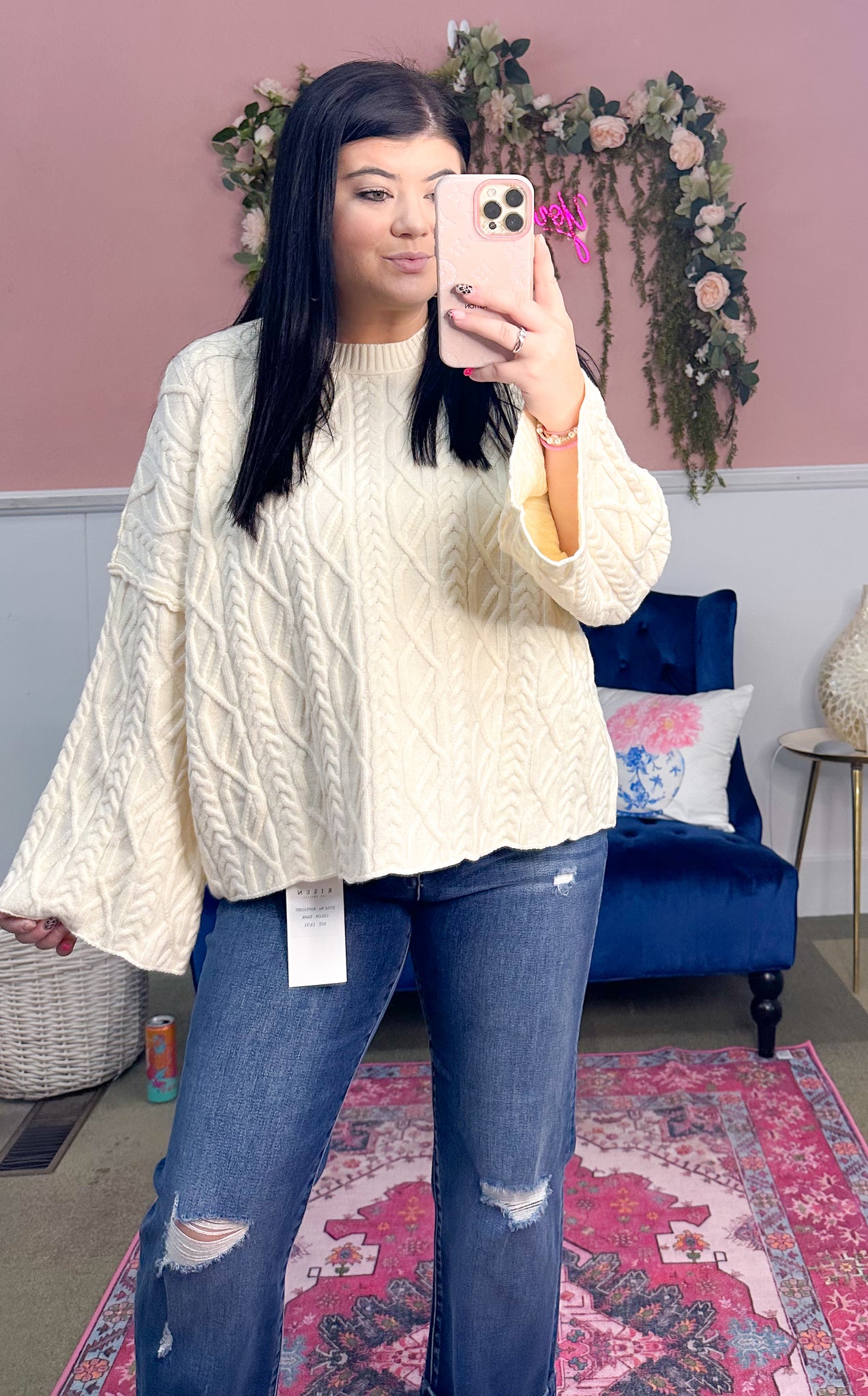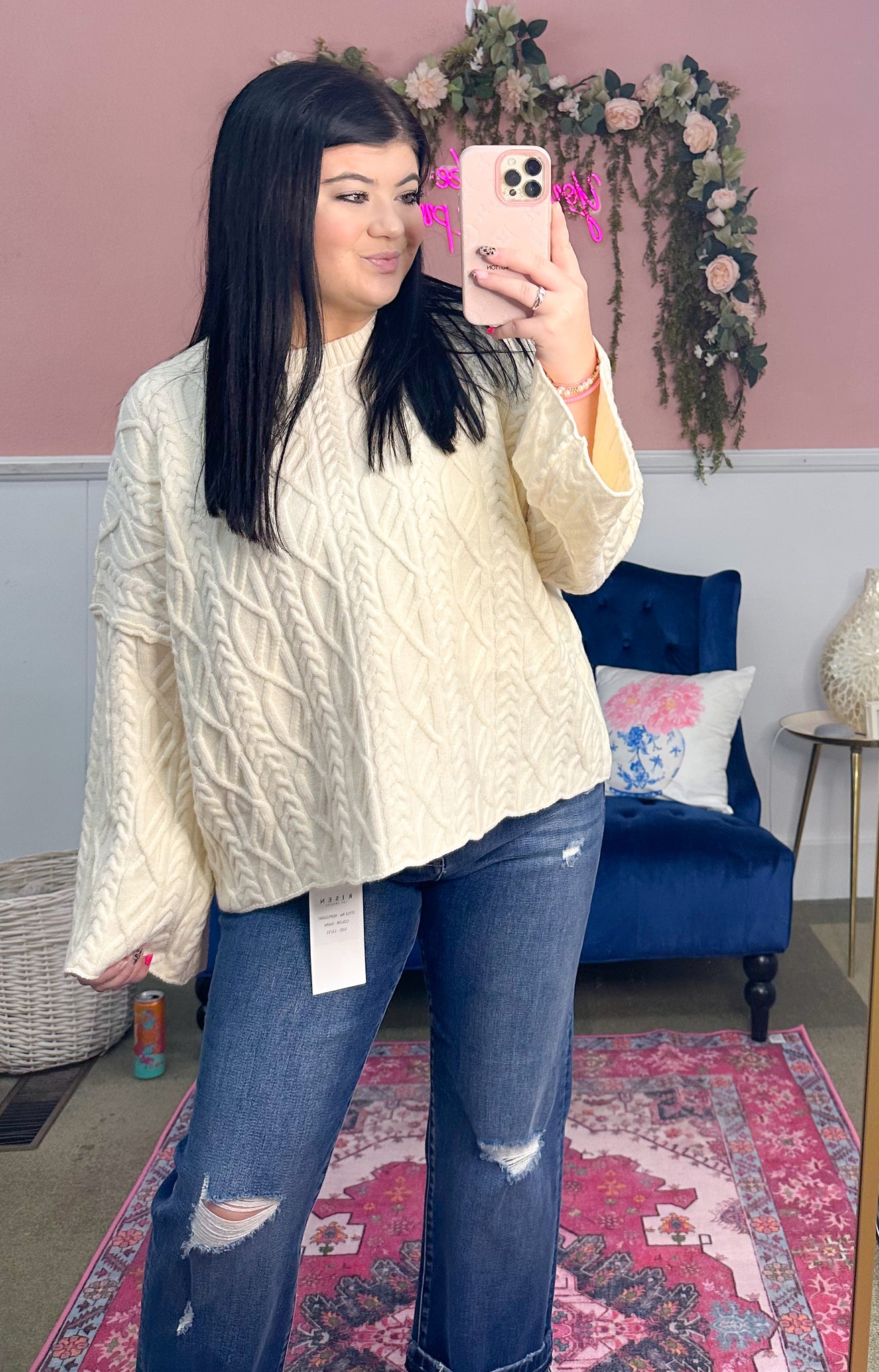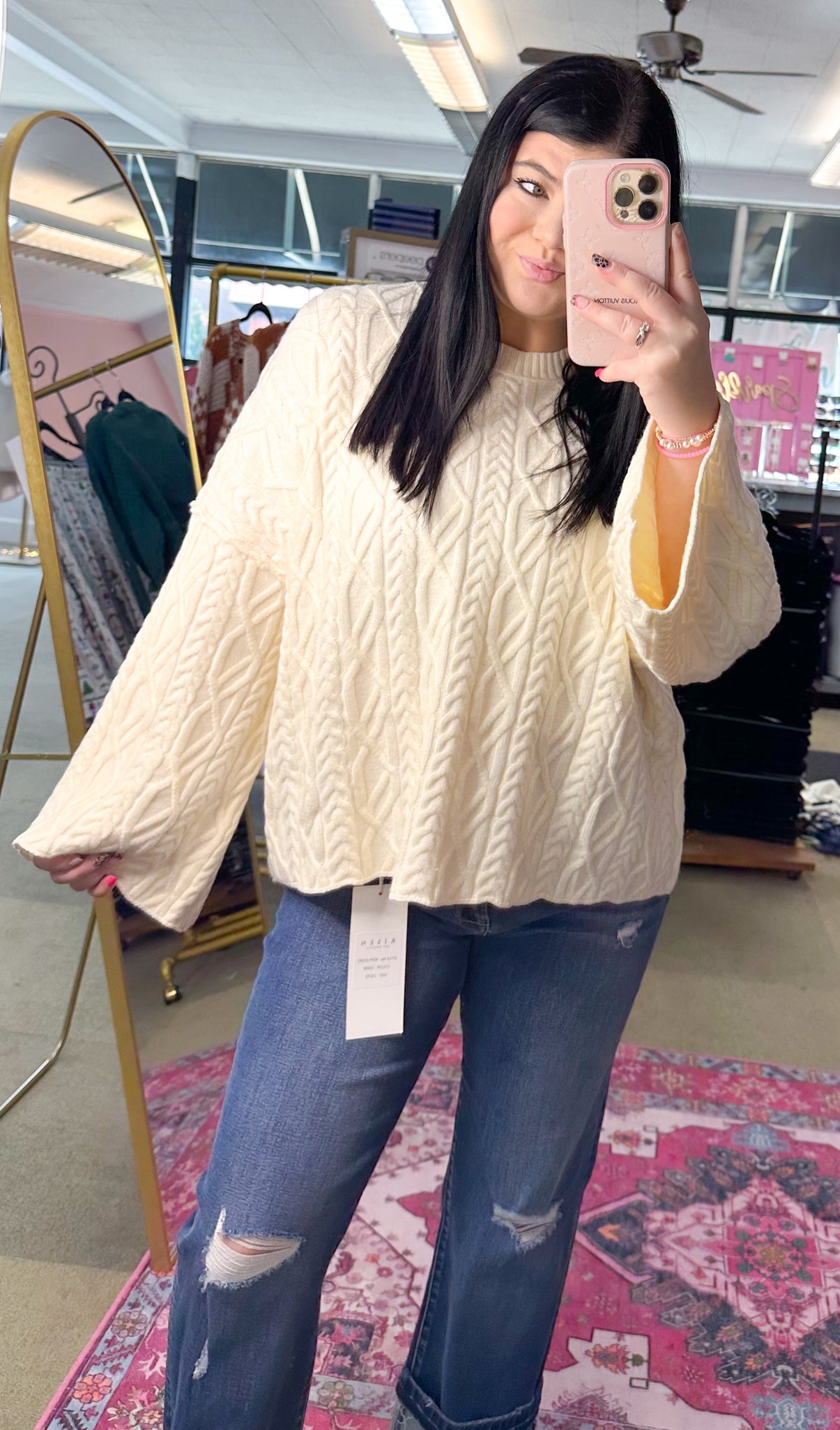 This is the absolute softest top in store! This is such a universal top! You could easily pair it with a skirt and boots, or jeans and booties! Fits a tad bit oversized savannah is wearing her true size which is a large! The cream can be worn for all of the cooler months!